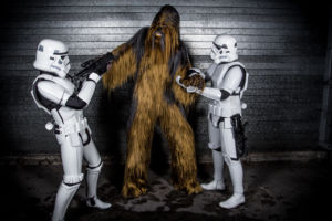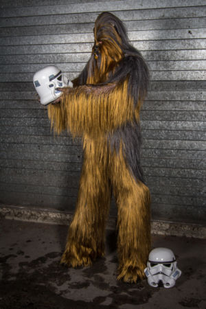 Eigentlich sollte das Shooting ja auf dem Waldmond Endor stattfinden, musste dann aber aufgrund des Wetters und der nicht abzusehenden Reisekosten in einer verlassenen Lagerhalle in der Nähe von Straßburg stattfinden, die uns schon häufiger als Location gedient hat.