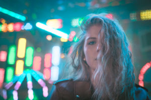Die ursprüngliche Inspiration lag für mich in den Bildern und der Art der Bearbeitung von Brandon Woelfel. Herausgekommen ist eine Serie, die ich mit NEON überschreiben möchte und in der die Farben Aquamarin und Violett bewusst dominieren.